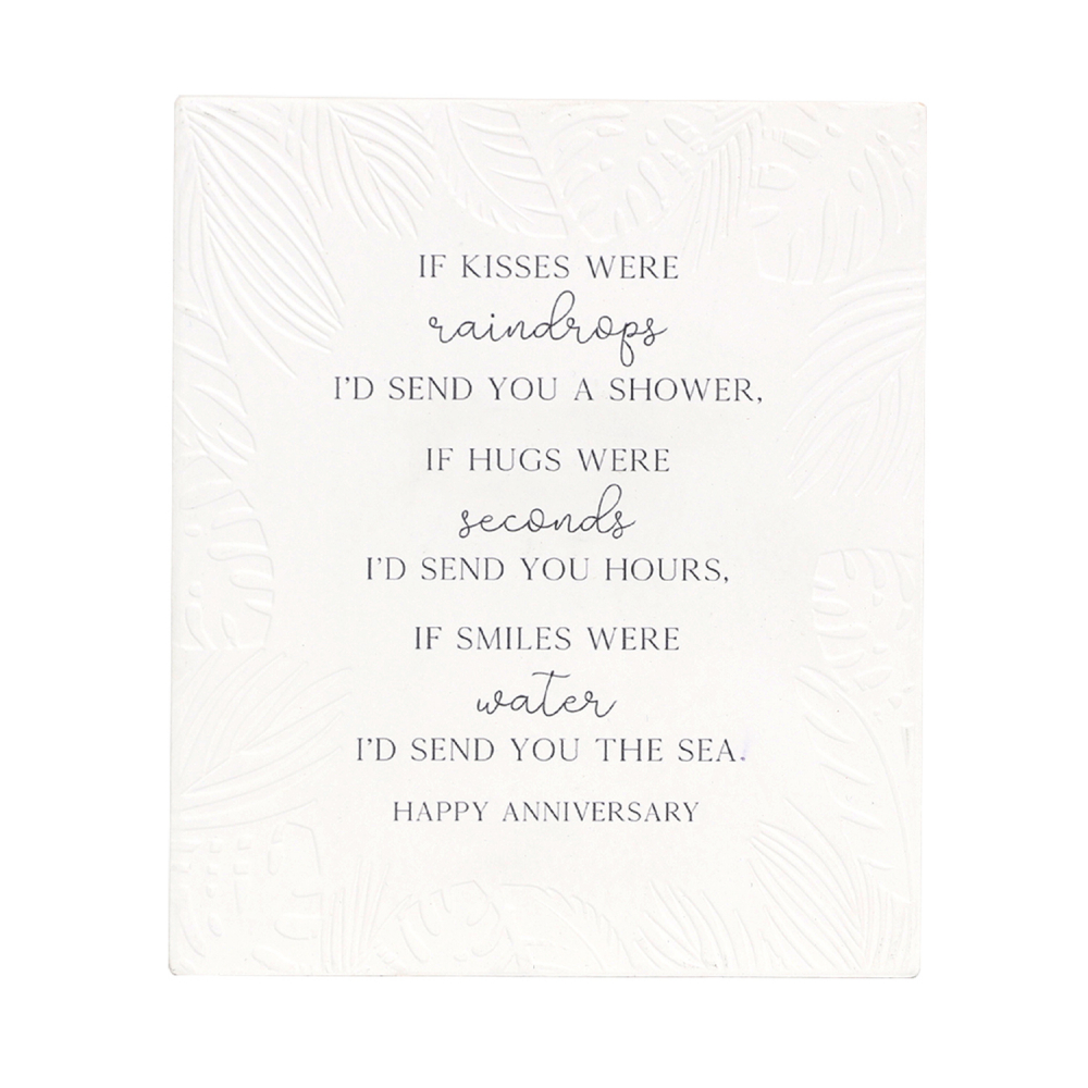 Celebrate love and some of life’s most precious milestones in style with the Splosh Anniversary Range. Featuring a variety of sparkling metallic frames, emotive verses and foiled trinket plates that make sharing the love extra special, these classic pieces are the ultimate heartfelt gifts! Features: 3D debossed design! Unique, heartfelt quote! Great gift idea! Product Information: Packaging: Full colour printed gift box Size: 12 x 0.5 x 14cm Details: Ceramic debossed printed verse with stand and hook for hanging