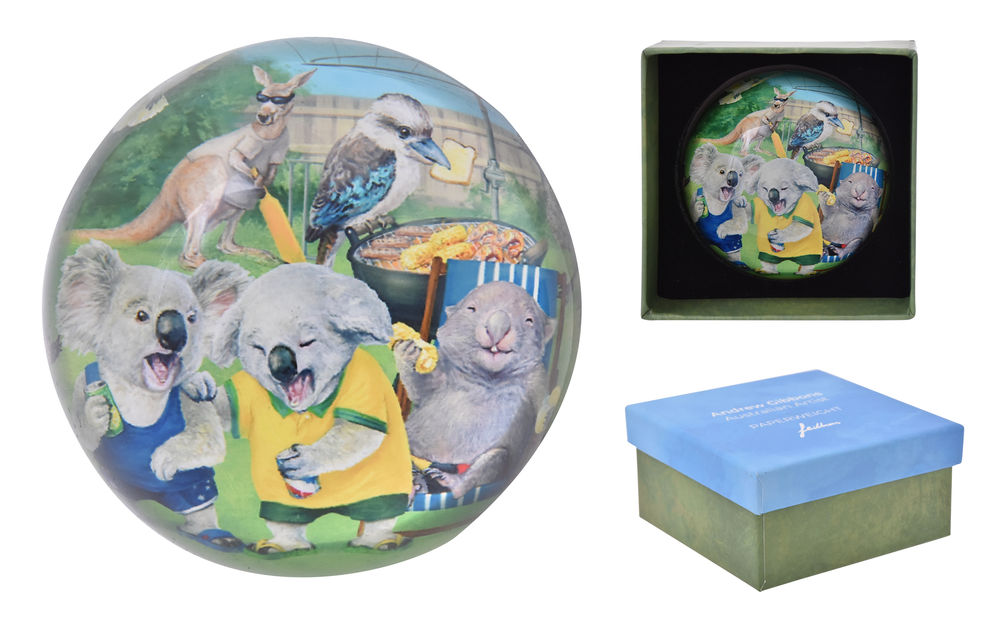 Paperweight with artwork by Australian artist Andrew Gibbons