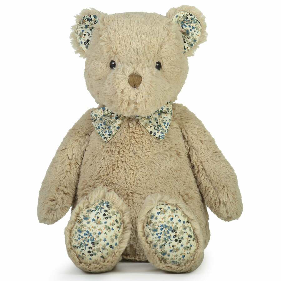 Bentley Bear has the softest fur and a super cute bow tie in a blue print fabric making him look both cute and smart.