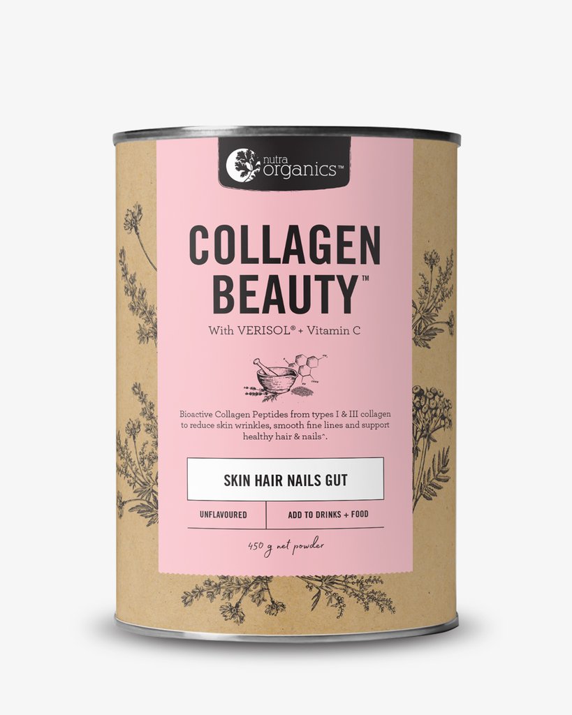 Glow from the inside out with Collagen Beauty™ with VERISOL®, a natural formulation to reduce skin wrinkles and smooth fine lines, increase skin hydration and elasticity, and support healthy hair & nails~. MORE INFO Nourish your skin, hair and nails from within with Collagen Beauty™, a naturopathically formulated blend to help you glow from the inside out with VERISOL® Bioactive Collagen Peptides, vitamin C and zinc^. Our skin is made up of over 75 % collagen, which begins to degenerate in our mid 20s, when we begin to show the signs of ageing skin, and is accelerated by other lifestyle and environmental factors. Collagen Beauty™ is a natural formulation with VERISOL® Bioactive Collagen Peptides to support structural integrity of skin and decrease skin aging factors after 8 weeks of use, supporting skin quality of the entire body and smoothing skin wrinkles from within^. Reduce skin wrinkles and smooth fine lines^ Increase skin hydration and improve moisture levels^ Increase skin elasticity^ Antioxidant Protection^ Support healthy hair & nails^ Promote skin healing^ Collagen Beauty™ is pregnancy, breastfeeding and child friendly (suitable for 12 months & up). ^when consumed in conjunction with a healthy, varied diet.