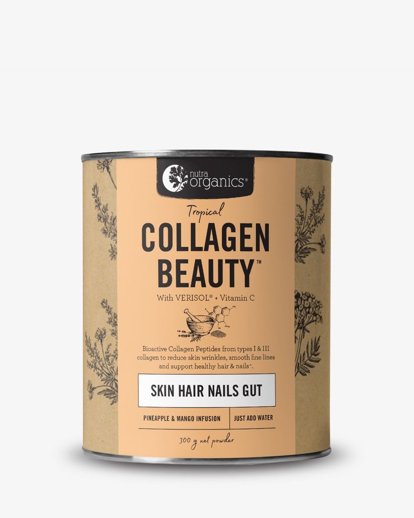 It’s time for a tropical glow with Collagen Beauty™. The most loved collagen on the market just got a tropical makeover. Our latest member of the family is bringing us serious summer vibes with fresh notes of juicy mango and sweet pineapple. This naturopathically formulated blend nourishes skin, hair and nails from within, and keeps things glowy from the inside out. With VERISOL® Bioactive Collagen Peptides, vitamin C and zinc, Collagen Beauty™ tropical is filled with premium ingredients to increase skin hydration and improve moisture levels, support skin elasticity and reduce wrinkles and fine lines. Skip the tropical vacay, a couple of weeks taking this beauty elixr is all anyone needs to feel their best & brightest. MORE INFO Nourish your skin, hair and nails from within with Collagen Beauty™, a naturopathically formulated blend to help you glow from the inside out with VERISOL® Bioactive Collagen Peptides, vitamin C and zinc. This natural, fruity and refreshing flavour is a convenient way to consume Collagen Beauty™ straight on water and tastes like juicy mango and sweet pineapple. Bioactive Collagen Peptides from types I & III collagen to reduce skin wrinkles, increase skin hydration and elasticity, and support healthy hair & nails^. Our skin is made up of over 75 % collagen, which begins to degenerate in our mid 20s, when we begin to show the signs of aging skin, and is accelerated by other lifestyle and environmental factors. Collagen Beauty™ is a natural formulation with VERISOL® Bioactive Collagen Peptides to support structural integrity of skin and decrease skin aging factors after 8 weeks of use, supporting skin quality of the entire body and smoothing skin wrinkles from within^. Reduce skin wrinkles and smooth fine lines^ Increase skin hydration and improve moisture levels^ Increase skin elasticity^ Antioxidant Protection^ Support healthy hair & nails^ Promote skin healing^ Collagen Beauty™ is pregnancy, breastfeeding and child friendly (suitable for 12 months & up). ^When consumed in conjunction with a healthy, varied diet. INGREDIENTS Hydrolysed Collagen Peptides, VERISOL® Bioactive Collagen Peptides, Premium Refractance Dried Fruits & Veggie [Pineapple (5 %), Mango (5 %), Apple*, Beetroot*], Natural Plant Based Flavours, Natural Sweetener (Monk Fruit Extract), Camu Camu*, Sunflower Extract, Orgen-Zn® Guava*, Horsetail Herb*. *Certified Organic Ingredients Allergen warning: Manufactured in a facility that also processes products containing milk, eggs, fish, shellfish, soy, lupin, tree nuts and sesame.