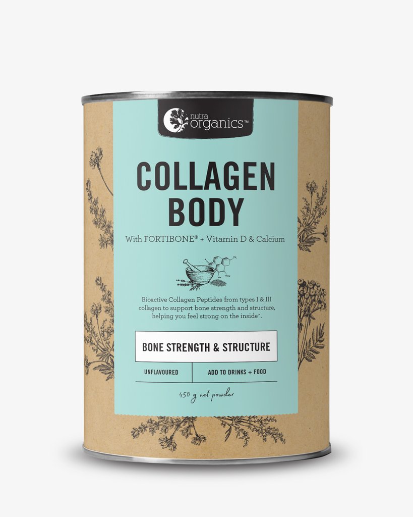 Collagen Body is a natural formulation for anyone living an active lifestyle, or anyone concerned with their bone strength, to help you feel strong inside with FORTIBONE® Bioactive Collagen Peptides, vitamin D and calcium to support bone strength and structure^. MORE INFO Collagen Body is a natural formulation for anyone living an active lifestyle, or anyone concerned with their bone health, to help you feel strong inside with bioactive collagen peptides FORTIBONE®, Vitamin D and Calcium to support bone strength and structure~. Collagen is abundant in skin, muscles, bones, joints and connective tissue, and begins to degenerate from our mid 20s. Incorporating Collagen Body into your daily inner strength routine, together with a healthy varied diet, helps to: Enhance bone mineral density^ Support gut wellness^ Protein to support & build tissues^ Reduce risk of osteoporotic fracture^ Regulation of digestive enzymes^ Muscle and nerve function^ Collagen is often left out of the modern diet because it is not present in substantial amounts in lean cuts of meat, but rather bones and connective tissue. Collagen Body is only the good stuff - pure type I and type III sustainably sourced collagen that fully dissolves in hot or cold liquid whilst maintaining its benefits. ^when consumed in conjunction with a healthy, varied diet.