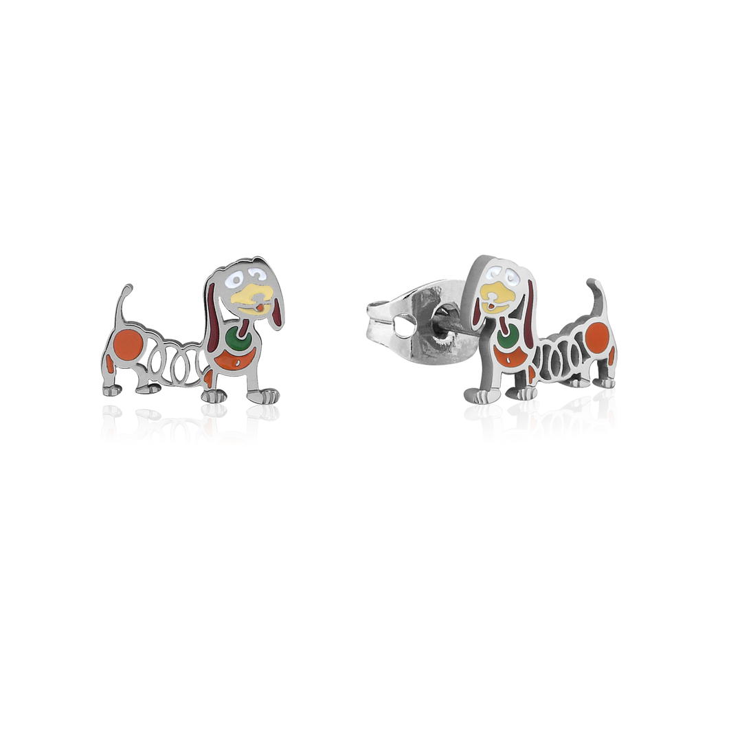 From the animated film Toy Story by Disney Pixar, come these adorable dainty stud earrings of the loyal and playful Slinky Dog! Features Stainless Steel including hypoallergenic earrings posts Stud length11mm Includes Pixar necklace envelope