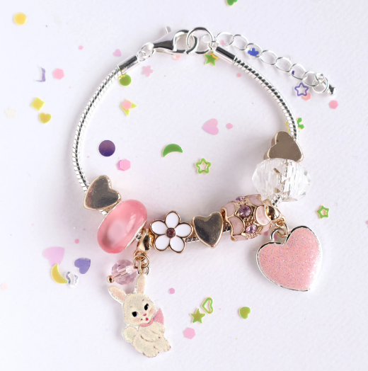 The Floral Dreams Bunny Charm Bracelets is a wonderful mix of old and new with a vintage-style bunny and a glittering, sparkling pink heart as the two main charms on the bracelet.