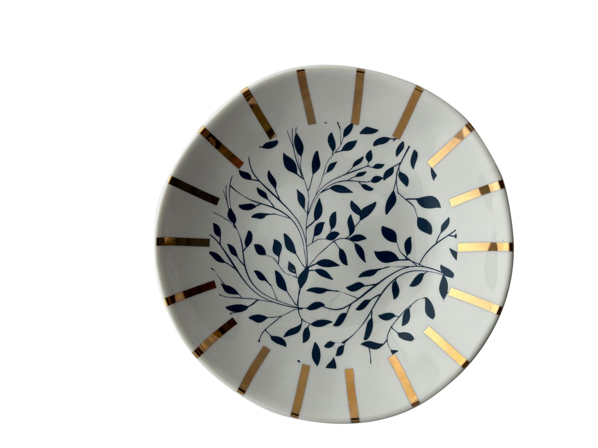Each trinket bowl has a gold rim and stripes.