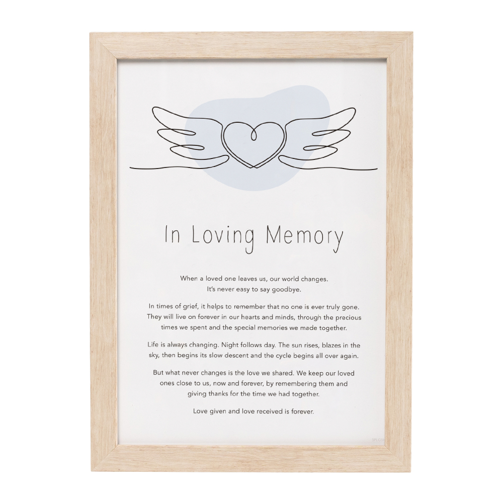 • Details: A4 print featuring heartfelt messages framed in a wooden-look frame.