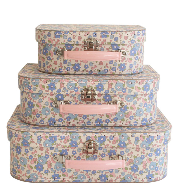 Gorgeous gingham print set of suitcase sets. Perfect for decor or play time! Large 29cm x 19.5cm x 9.5cm. Medium 25cm x 18cm x 8cm. Small 20cm x 14.5cm x 7.5cm
