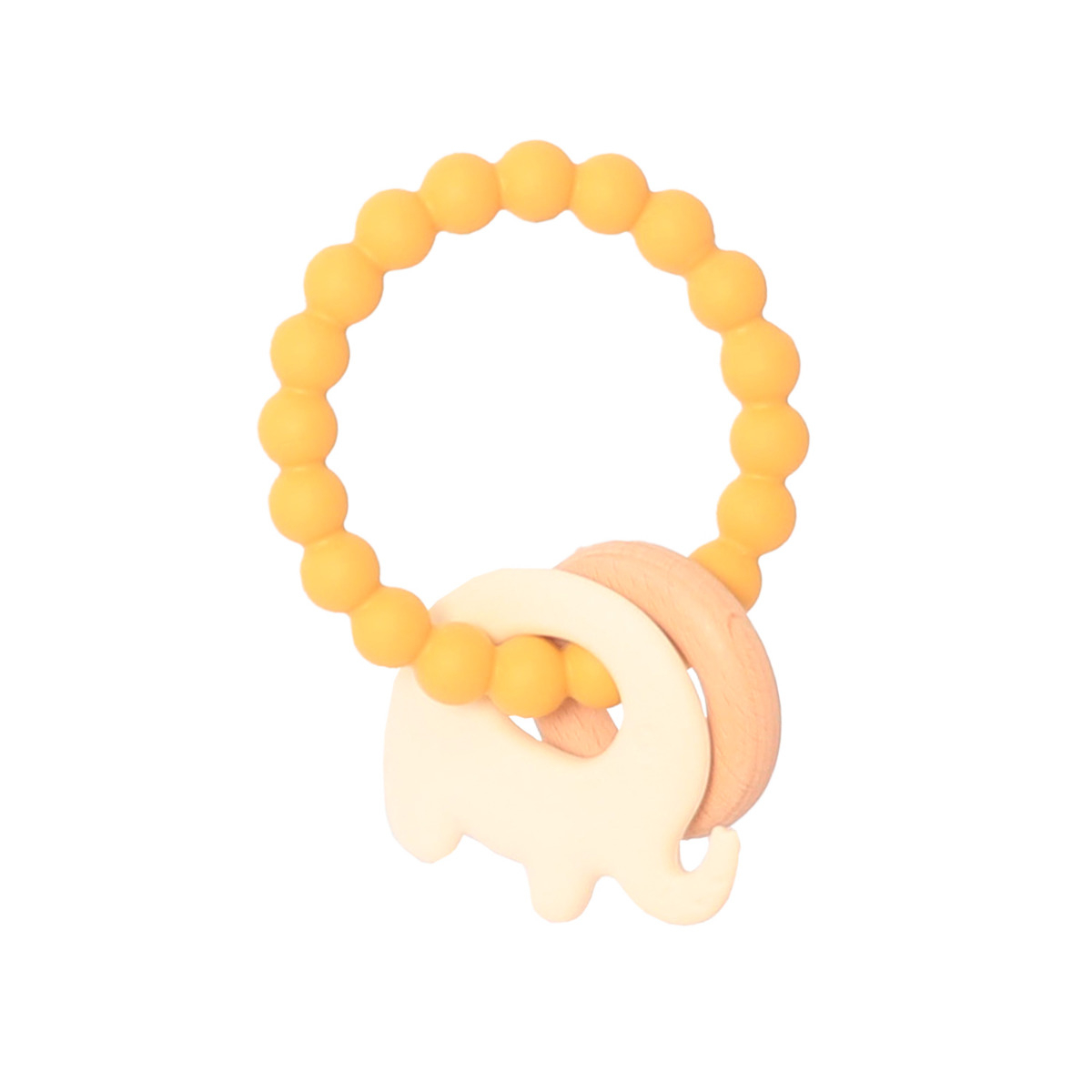 - Details: Durable silicone and beechwood teether featuring a cute elephant design