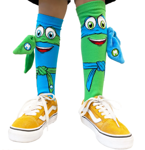 Tough, Loyal & Brave! Remember to wear your stealthy NINJA SOCKS when you spy in search of truth and happiness! Kids & Adults Socks Our most popular size. These socks are 'one size fits most' and are suitable for ages 6 - 99. They can fit adults but we recommend up to shoe size EU 41 equivalent to womens size 8/9 AU. Please note, they do have limited stretch around larger or muscular calves. Socks with less busy patterns such as (Mermaid Socks, Liquorice Bows Socks, Bows to Toes Socks) have better stretch and we highly recommend these patterns for adults to avoid stretch issues. Toddler Socks Most suitable size for children aged 3 - 5. If your little one is about to turn 6 soon we would recommend buying our standard 'Kids & Adults' size (for ages 6 - 99).