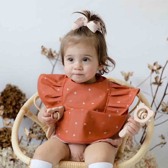 Our Snuggle Hunny bibs are a beautiful way to brighten up mealtimes whilst keeping mess to a minimum. This bib features our exclusive Snuggle Hunny Palm design with our signature frill. Perfect for baby gifts.