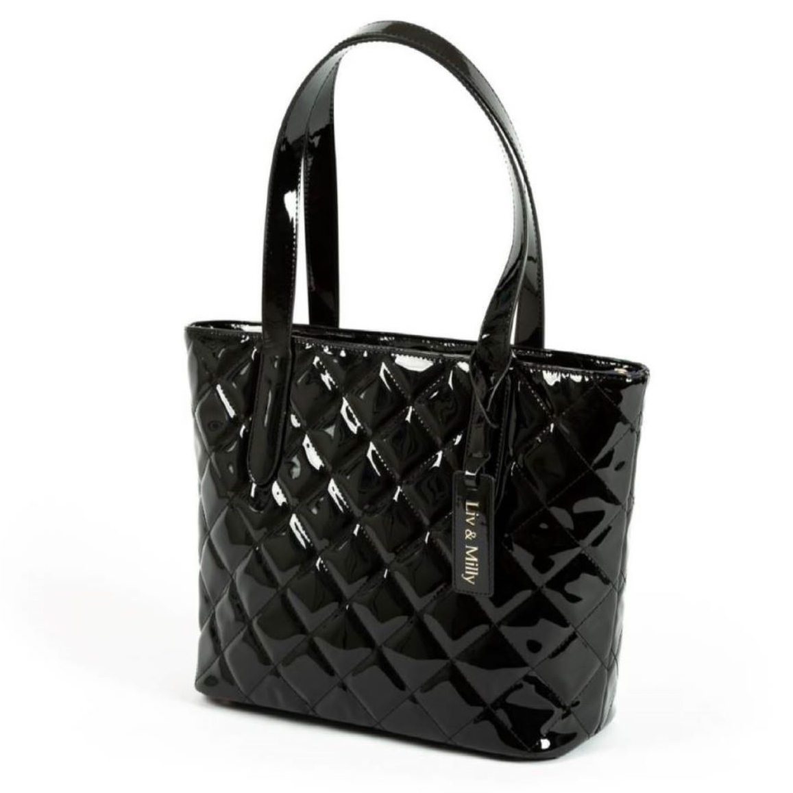 How gorgeous and fun is this patent quilted tote!