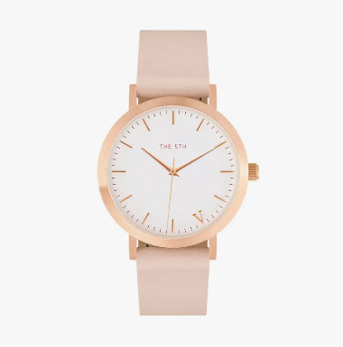 The 5TH’s most loved style has been scaled down to a 38mm diameter to comfortably fit slender wrists. The simple but classic dial features brushed hands and each hour is marked by an applied index. The white dial is vibrant against the brushed rose gold steel case and it has been consciously designed so it can be worn and adored every day.