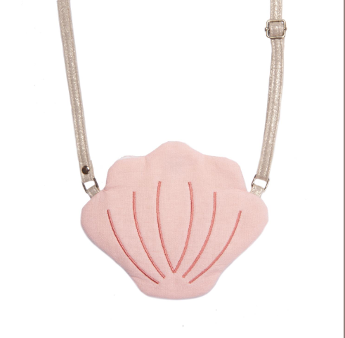 This sweet shell cross body bag is the perfect way to add a little mermaid magic to your outfit! Made from super soft pink fabric and fully lined in pink polka dot fabric. With a magnetic dot closure and an adjustable gold strap with a break point for safety.